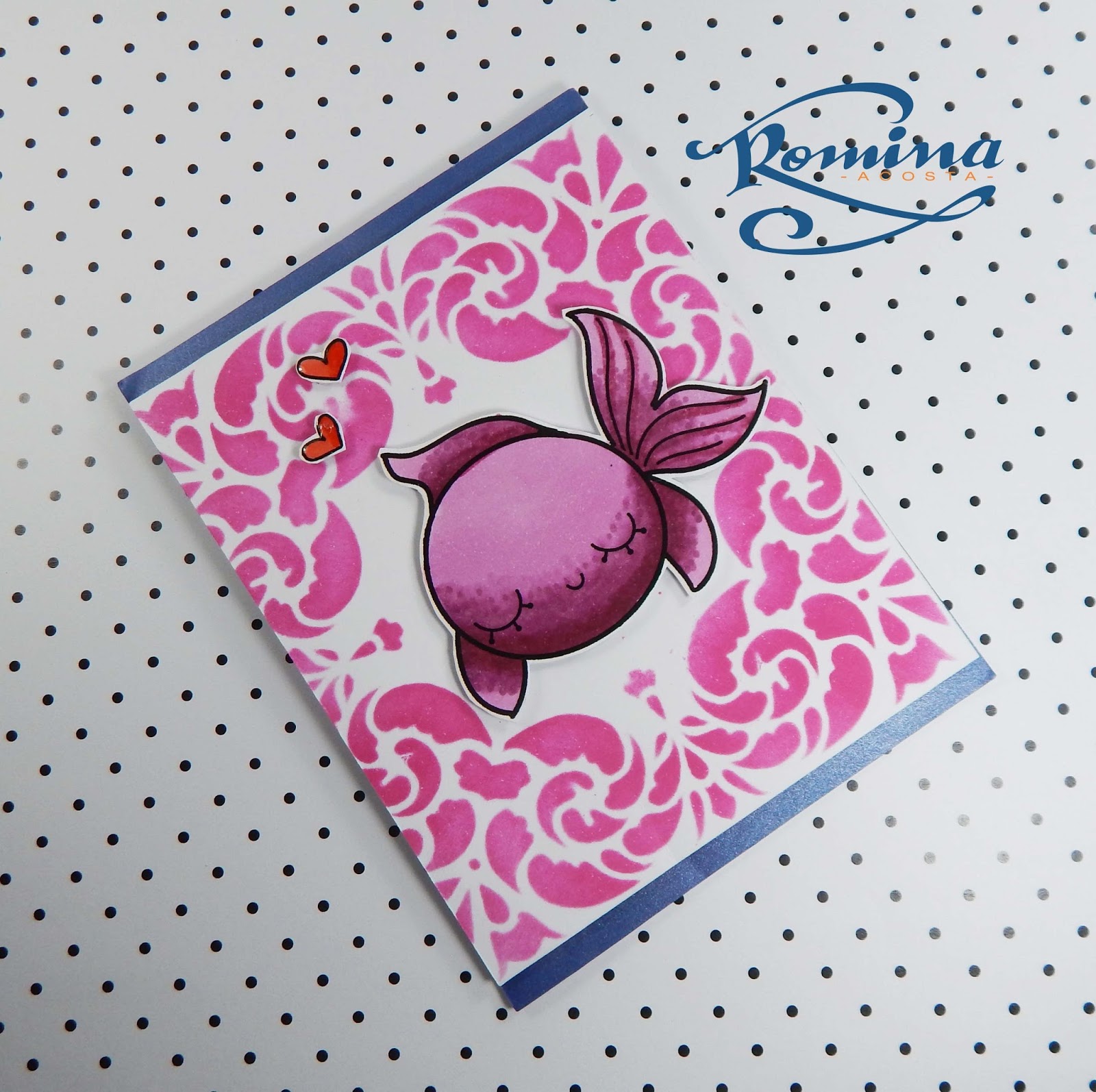 Para esta tarjeta decidí usar un un digi de 2 Cute Ink digi stamp, cual ame al instante. Como no quería hacer el típico fondo de Mar ni hacer el típico color del pez decidí armar todo en un solo tono y adivinen ¿que? El resultado me encanto!