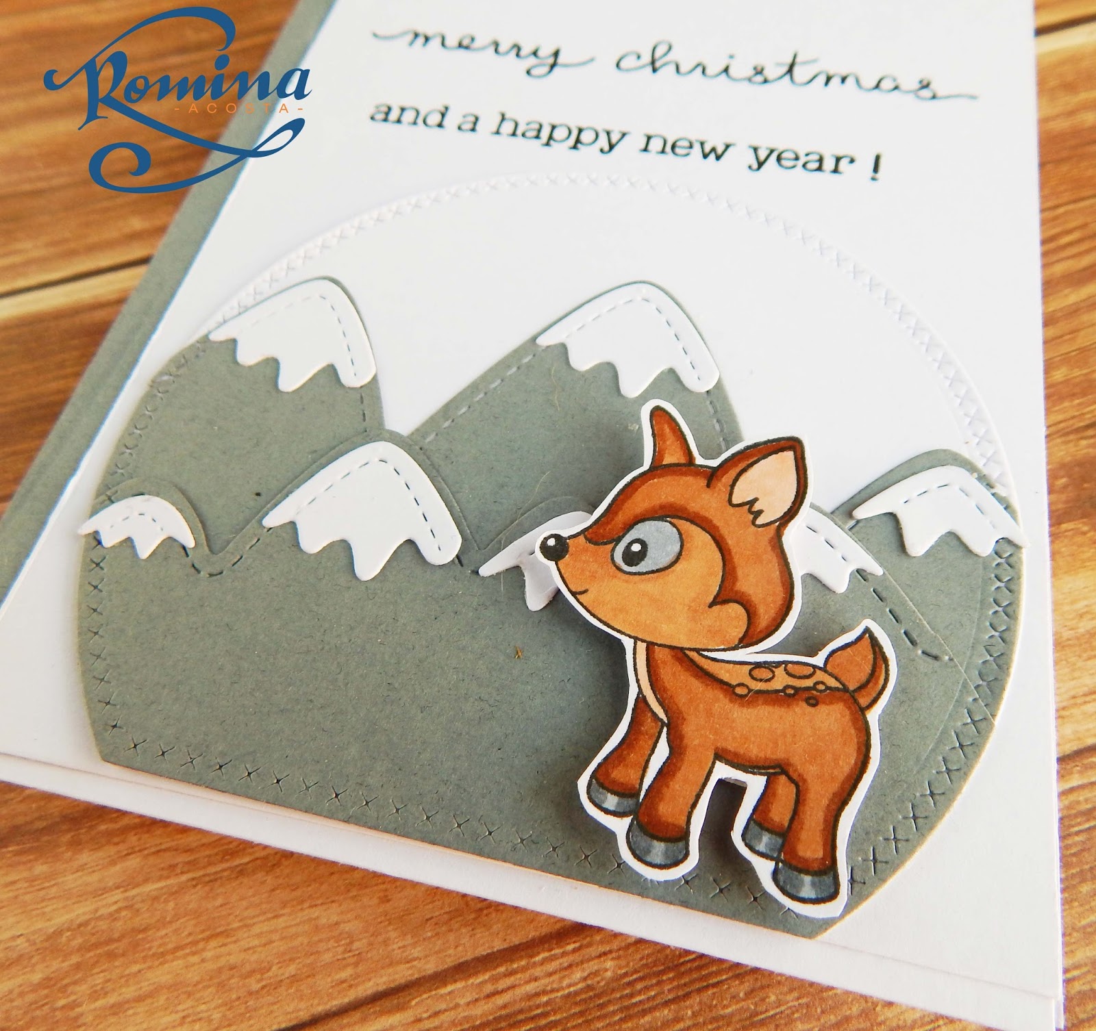 Para mi tarjeta use el sello eres mega especial, que lo pueden conseguir aquí. Use una base de tarjeta y en ella coloque un papel troquelado de MFT y recree una escena de una montañas con troqueles. Coloque la escena en la parte inferior de la tarjeta.
