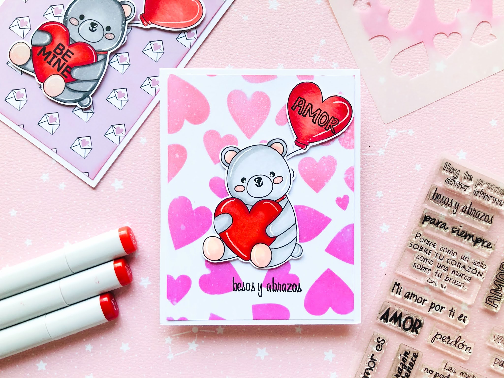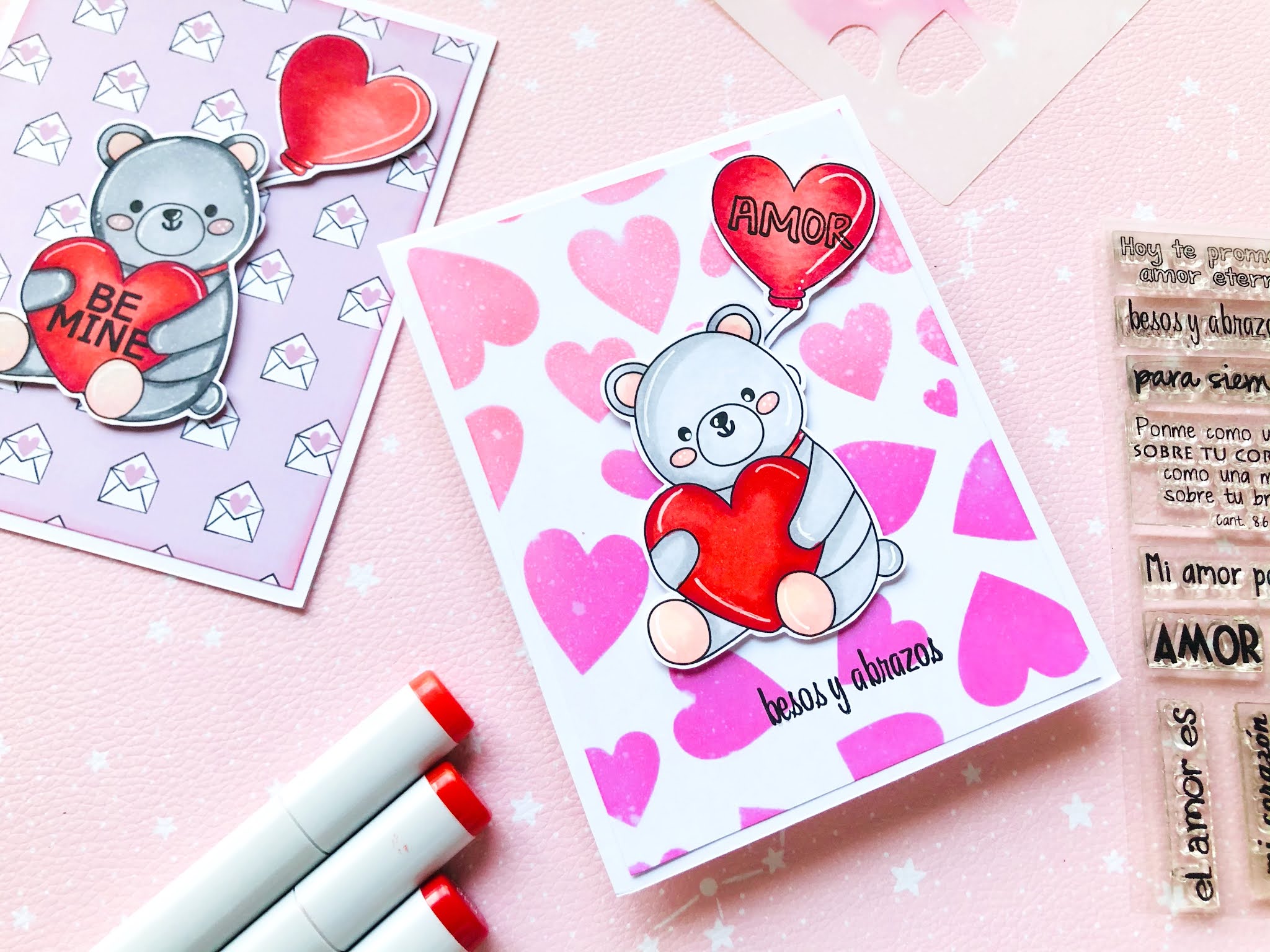Amo poder darle dos opción de tarjeta, una simple con un papel decorado de fondo (además es gratuito) y otro un poco más elaborado con stenciles de mil artes.Hacerla me llevo 9 minutos, realmente es súper fácil de hacer. Cuando la pensé en mi cabeza quería un sello digital en forma de oso como no había uno que me gustara, me puse a diseñar algo que se adapte a lo que necesitaba.