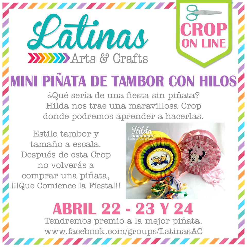 Les cuento que yo Feliz!!! ¿Y saben por que? Por el evento de LA&C, Hilda nos enseña armar una piñata tambor desde cero en un crop en Facebook. Para participar tienes que hacer click aquí. El evento estará vigente desde el 22 a las 12 hs Mexico hasta el 24. Además si quieres ver el trabajo de las DT pueder verlo aquí.
