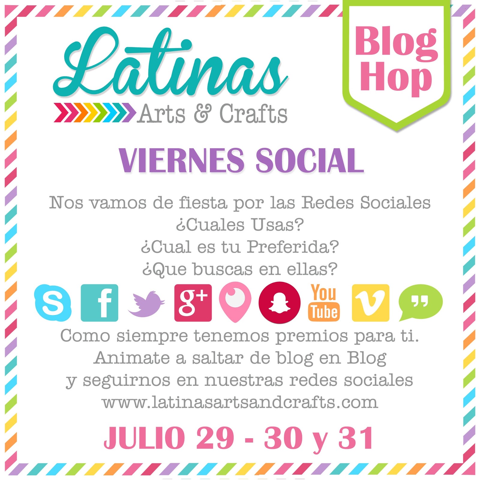 Como dice el titulo bienvenidas al viernes social, sin embargo este evento durada desde el 29 hasta el 31 inclusive. Es un blog hop por lo cual dejaré mas abajo los links para que salten y puedan participar del premio. Pero recuerden que todo empieza en LA&C.